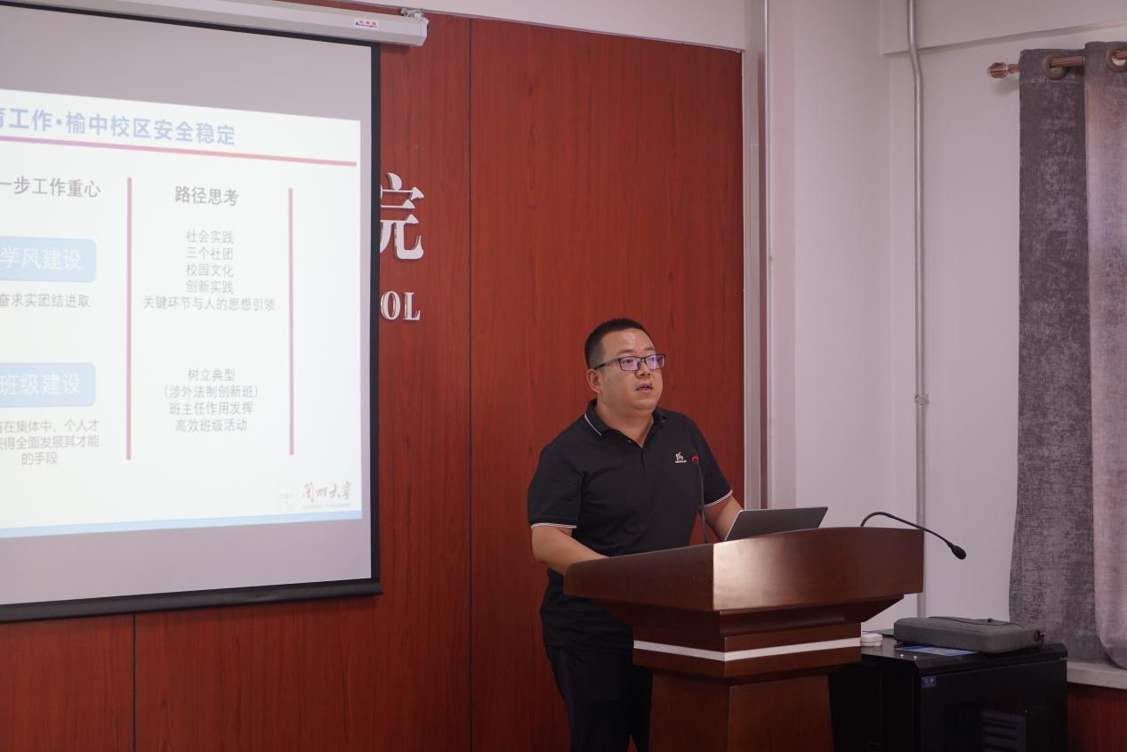 孙龙宇副书记、副院长就研究生思政工作及行政工作进行汇报,结合服务保障、队伍建设、师生交流、就业工作、校友工作、培训工作等方面进行相关安排。
