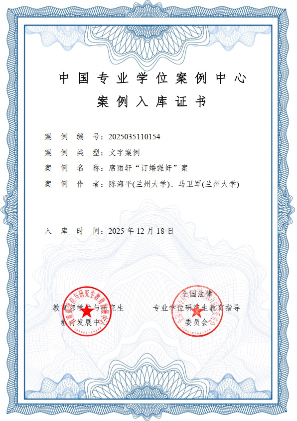近日,由兰州大学法学院杨雅妮教授、陈海平教授分别作为第一案例作者的2项文字案例,成功被中国专业学位案例中心收录。此次入库彰显了学院在法律实践教学与案例研究领域的深厚积淀与突出成果。