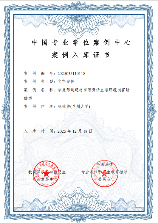 杨雅妮教授的《临夏陈姚建材有限责任公司生态环境损害赔偿案》,以临夏陈姚建材公司生态环境损害纠纷为实证样本,系统解析生态环境损害赔偿中的因果关系认定、损失评估标准与修复方案执行等核心问题。案例聚焦“环境追责+生态修复”双重目标,深度串联《民法典》《环境保护法》《生态环境损害赔偿制度改革方案》《生态环境损害赔偿管理规定》等规范的适用逻辑,为环境司法实践提供了可借鉴的裁判思路与教学范本。