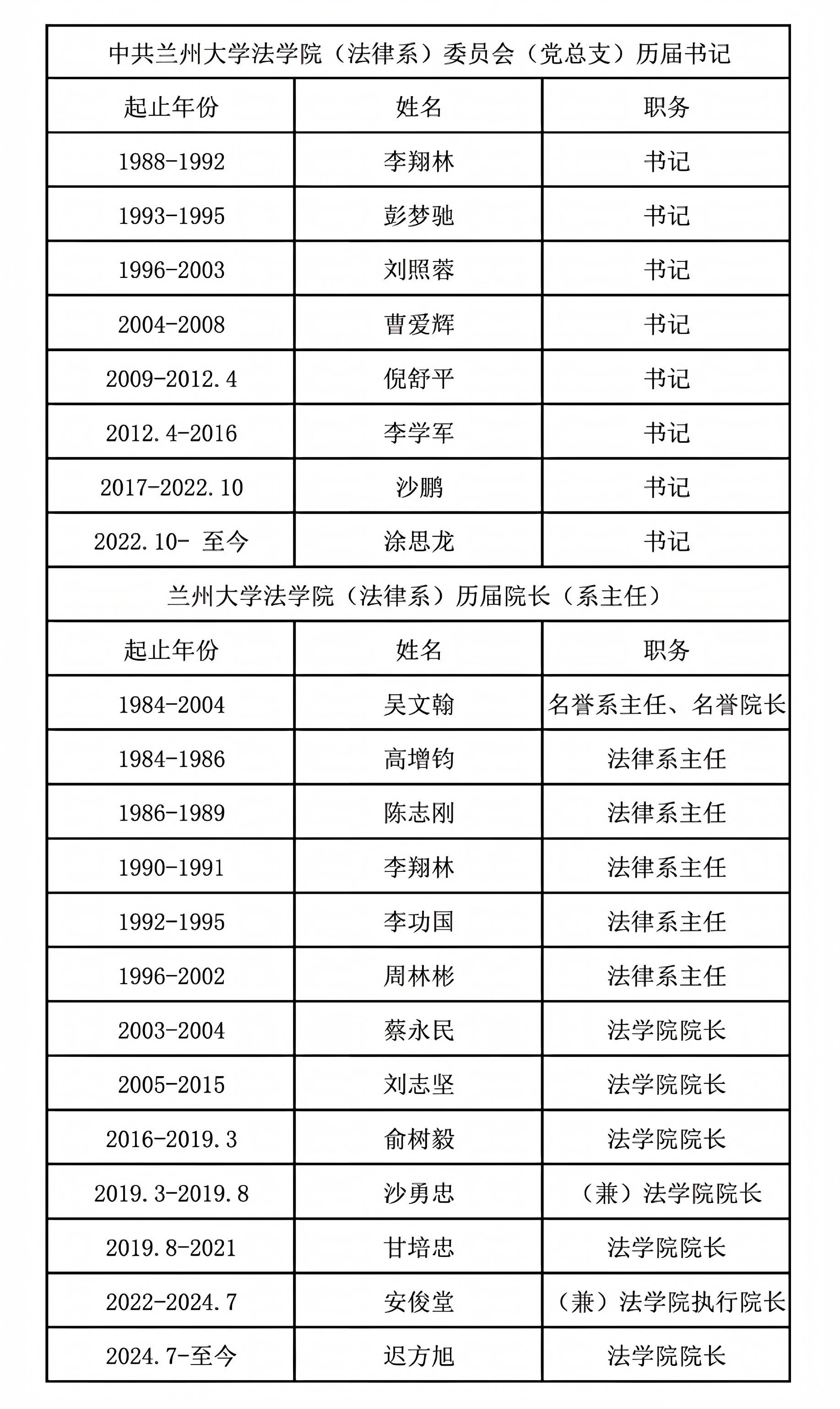 法学院前身为兰州大学法律学系,可上溯至1909年建校伊始。1946年,国立兰州大学时期,学校设法学院等4个学院,其中以法学院力量最强。1952年,将文学院、法学院合并,改称“文法学院”。1953年,院系调整。1984年,法律学系恢复重建。2003年6月25日,兰州大学法学院成立。